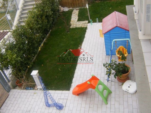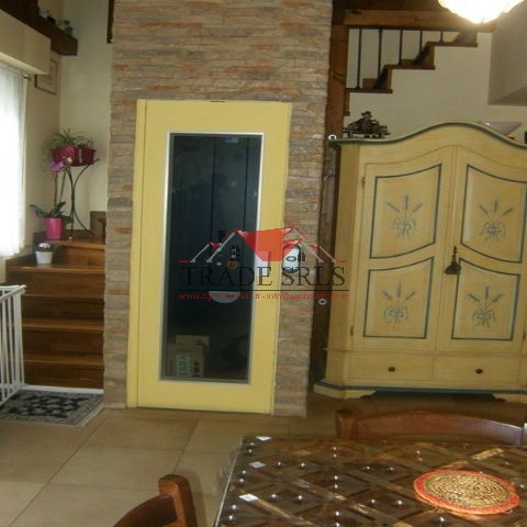 In zona tranquilla e immersa nel verde porzione di casa bifamiliare da cielo a terra con doppio ingresso indipendente, disposta su 3 livelli con ascensore interno, climatizzazione, termo a pavimento, fotovoltaico, giardino 250 mq circa attrezzato con impianto irrigazione, illuminazione, 3 fontane, deposito attrezzi in legno e gazebo. e' cosi' composta: piano terra (50 mq circa) ingresso nel soggiorno, cucinino, bagno finestrato con doccia; 1^piano (110 mq ca) salone trifinestrato, cucina ab. con terrazza panoramica su colline, camera matr., camera media con soppalco, bagno fin. con doccia, clima in tutte le stanze, soffitto con travi e legno a vista, altezza max 4,5 m.; piano seminterrato (70 mq circa) con garage e posto auto esterno, taverna con angolo cottura e bagno cieco con doccia, locale adibito a camera matrimoniale.