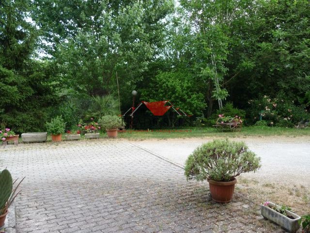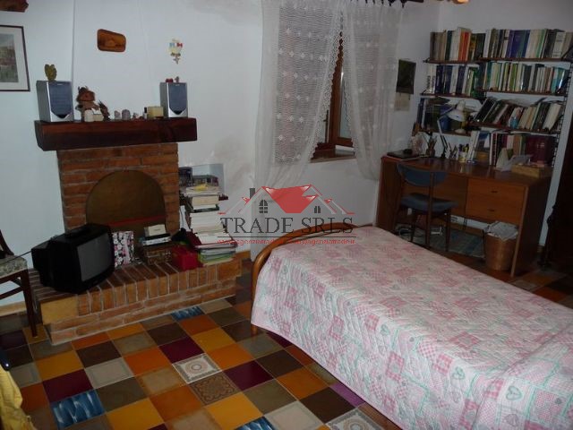 Ex casa colonica di mq 260 circa disposta su due piani di 130 mq circa ciascuno, cosi' composta: piano terra con ingresso sul soggiorno con camino, sala, cucinino, antibagno, bagno finestrato con vasca, ripostiglio, cantina e portico di 20 mq circa; 1° piano studio con camino, 3 camere matrimoniali, camera singola, ripostiglio, bagno con doccia. corte esclusiva di 2500 mq circa in gran parte tenuta a giardino, con annessi garage di 40 mq circa su corpo staccato, capanna in muratura di 42 mq, deposito attrezzi con forno. frustolo di terreno di 6000 mq circa tenuto in gran parte ad orto.